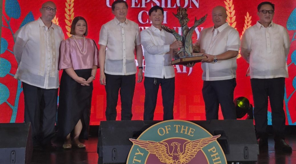 The UP Epsilon Chi Fraternity Alumni, Inc. receives the UPAA Distinguished Service Award for an Alumni Chapter. Rico V. Domingo, Norberto P. Mendoza, and Bienvenido I. Somera, Jr. are the recipients of the UPAA Presidential Awards.